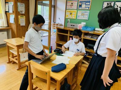 小中学校、共に、GIGA端末を持ち帰って、14時30分からチームスを使って学年チーム会議を行います。そのやり方を確認するなど、事前準備を行っています。