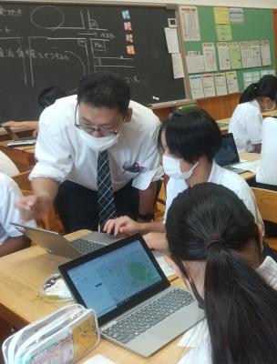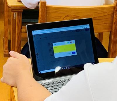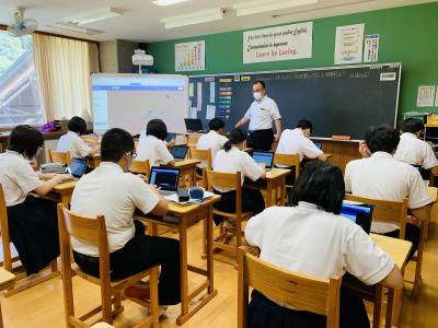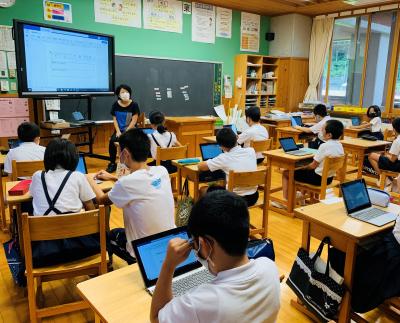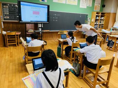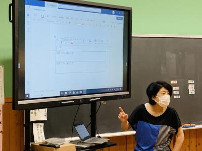 一人一台端末を使って児童生徒の考えを繋げるソフトウエアの使い方を学んでいます。