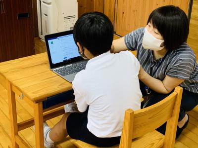 ICTサポーターさんと一緒に、平仮名入力の練習をしています。