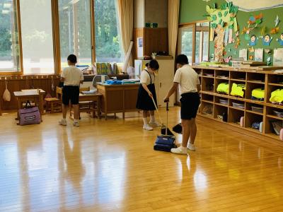 月末の大掃除の日です。一生懸命そうじをしています。