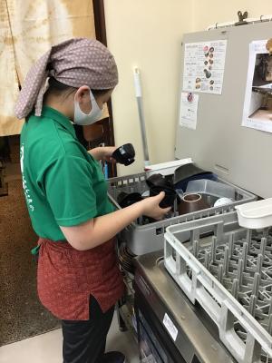 食堂で接客をしたり、食器を洗ったりしています。元々興味があった職場だったそうで、体験してみて、将来働きたいと改めて思ったそうです。