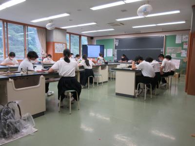 復習テストを行っています。午前の国語、社会、数学はなかなか手強かったとの声が。努力の成果を発揮できるといいですね。