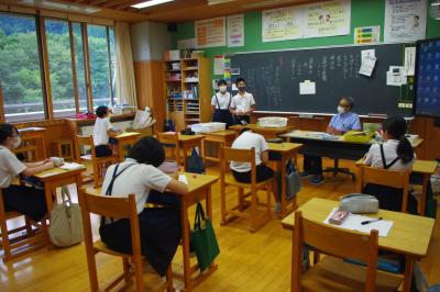 総合的な学習の時間では、夏休みに行った職場体験で学んだことを振り返っています。中学2年生も第12回日本ジオパーク全国大会 白山手取川大会で発表します。