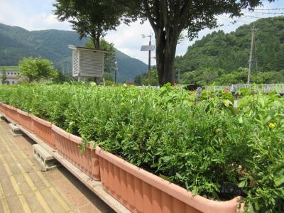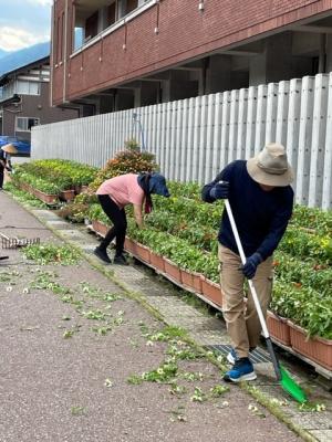 今日は前庭のプランターの花の切り戻しをしていただきました。