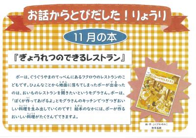 給食と絵本とのコラボは、これからも続きます。来月もお楽しみに!