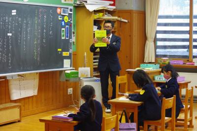 小学校の朝読書では、先生が児童に絵本を読む「おはなしプレゼント」を行っています。