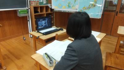 英語はオンラインでプリントの解説、社会は授業を行っています。