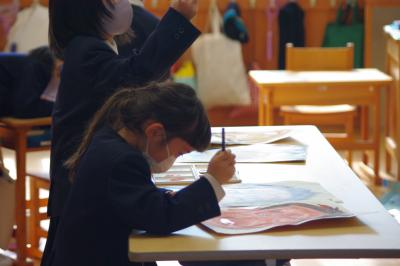 大阪の小学校との交流に向けて、資料の準備をしています。