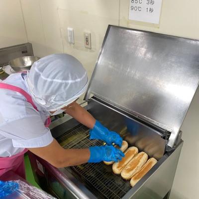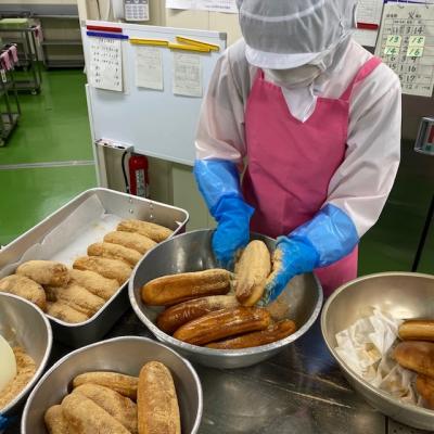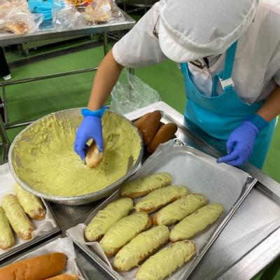 給食の揚げパンは、高めの温度でササッと揚げます。