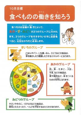 そして、10月の給食目標は「食べ物の働きをしろう」です。