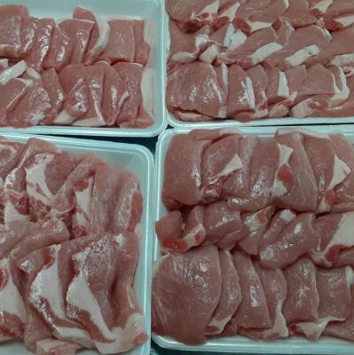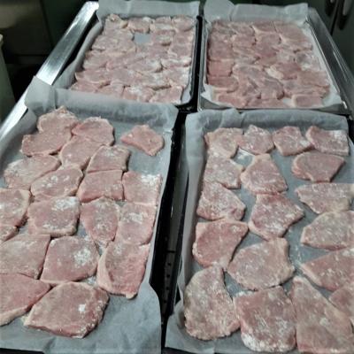 豚肉はおいしそうなロースを使います。米粉をまぶして、鉄板に並べてオーブンで焼き上げます。