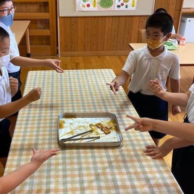児童 「今日の給食もぜんぶくわの上で焼いたんか?!」