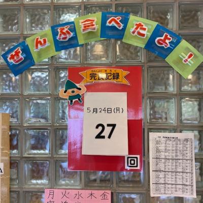 今日までで給食のあった日は「29回」。完食記録は「27回」です。