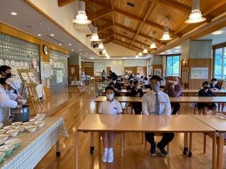 白嶺では、いつもは小学生、中学生全員がランチルームで給食を食べています。