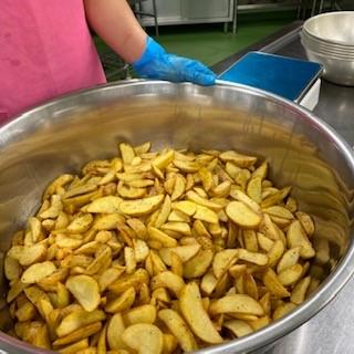 ポテトには、塩こしょう、カレー粉、乾燥パセリを混ぜたものをからめてあります。