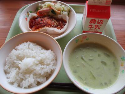 新緑の季節にぴったりな「さわやかお豆のスープ」が給食に登場しました