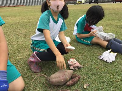技術 収穫を終えた学校園の草木を使って焼き芋をしています。