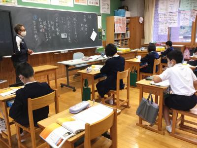 小学校5年生は6限目に、学習発表会で発表したことを紹介し合っています。