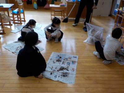 保育所の子どもたちにプレゼントするおもちゃを作っています。