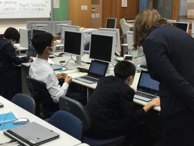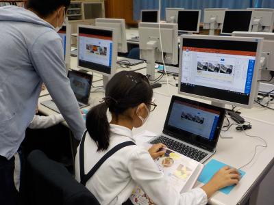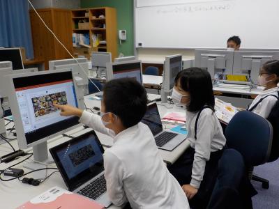 総合的な学習の時間 説明に合う写真やアニメーションを入れるなど、プレゼンの仕上げを行っています。