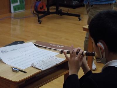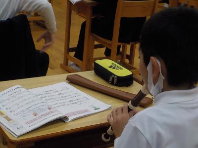 音楽 「明日があるさ」をリコーダーで演奏しています。シャープの音に気をつけています。