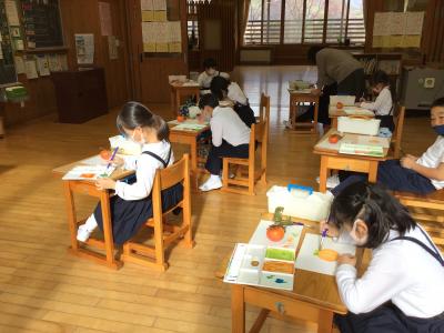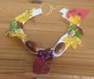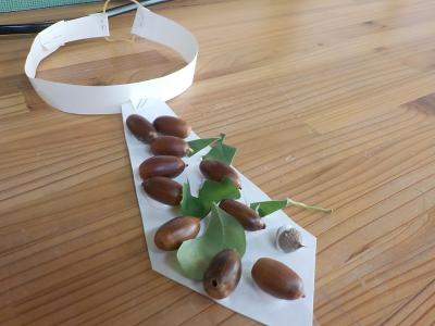 図工 秋の実や落ち葉を使って、家族へプレゼントする作品を作っています。