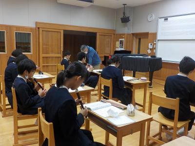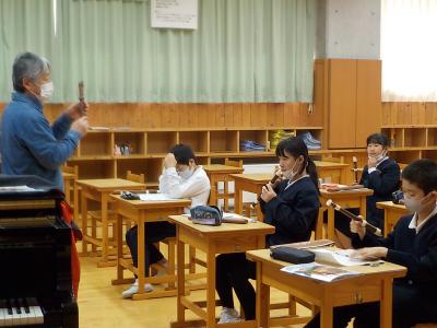 音楽 もののけ姫のテーマソングをリコーダーで演奏しています。3年生は音階を歌って音を確認してらから練習をします。