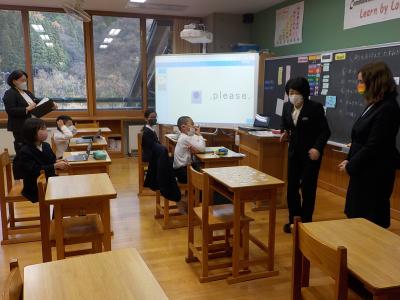 今日は、石川県教育員会学校指導課と金沢教育事務所の皆様、白山市教育委員会の皆様が来校されています。学校の様子を見ていただき、学校をよりよくするためのアドバイスをいただいています。
