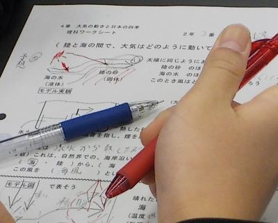 理科 地震によって台地にどんな変化が起きるのかを考えています。プレートの動きや活断層を視点に考えています。