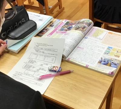 社会 能美市の特徴について学んでいます。九谷焼にたずさわる人が多いことが分かります。