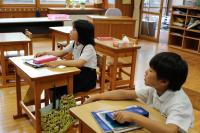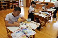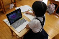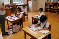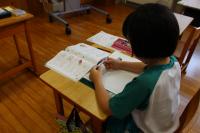 1年 小学校で初めての夏休み。宿題の内容を確かめています。