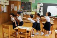 〈小学校〉運動会練習 1・2・3年生は「大玉ごろりん!」、4・5・6年生は「2024 台風890号」の練習をしました。