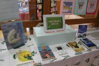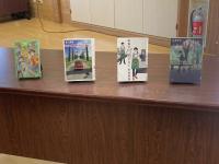 図書館前のコーナーには「平和に関する本」や「7月誕生の作家の本」が展示されています。