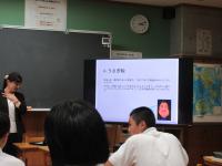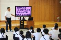 子どもたちが薬物乱用の危険性・有害性について正しい知識を持ち、薬物乱用を拒絶する規範意識を向上させるとともに、薬物乱用について適切な対処や行動を理解させ、正しく判断し行動できる態度を身に付けさせることが必要です。そこで小学校6年生と中学校1年生を対象に、警察の方を講師として学習する機会を設けました。