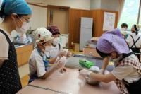 5年 家庭科「食べて元気に」 ごはんの炊き方の実習です。炊いたごはんでおにぎりを作りました。