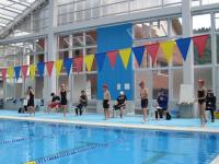 〈小学校〉白山ろくの4つの小学校5・6年生が水泳交歓会を行いました。水泳学習の成果を披露し、交流を深めました。最後にみんなで大きな渦をつくり流れるプールを楽しみました。