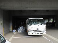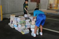 〈中学校〉育友会行事の資源回収に向けて、中学生が学校の古新聞や段ボール、古本などを運び出しました。