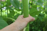 ひまわりの草丈が2メートルを超えました。茎もずいぶん太くなりました。葉の大きさは子どもの顔の大きさくらいあります。