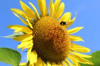 ひまわりの花はお盆の間もきれいな花を見せてくれました。大きな花に蜂もやってきます。