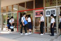 今日は小中合同で運動会の開閉会式・玉入れ競技の練習を行いました。紅団・白団共にきちんと団ごとにまとまって並んでいる姿は立派です。暑い中ですが、休憩をとり、給水対策を講じて練習に臨んでいます。