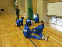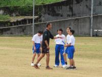 中1 上段:体育 リレーのバトンパスの練習をしています。 終了後は集合して振り返りです。
