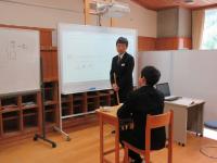 中学2年生 ALTに向けて山麓のよさを伝えるための発表の練習をしています。