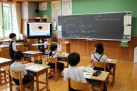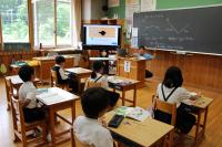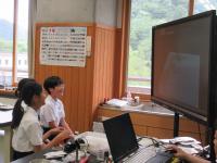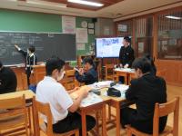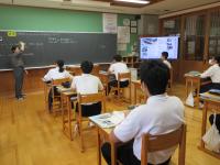 中1理科 日本列島の地震の学習において、地震や津波が起こる様子を動画で見ています。
