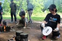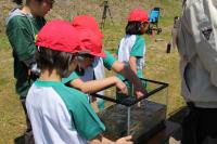 5年生 「山ろく4小学校 集合学習」合宿2日目、今日は野外炊飯を行いました。飯ごうでご飯を炊くために、かまどの準備からします。火を起こし薪で火力を調整します。どのグループもおいしいご飯が出来上がりました。カレーライスにして味わいました。2日間の活動を通して新しい友達ともすっかり打ち解けた様子です。いい思い出がたくさんできました。