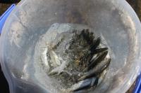 3年生は大日川で鮎の放流を行いました。約14,000匹の鮎の稚魚を放流しました。