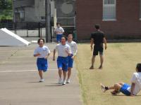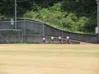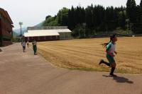 長休みはマラソン練習です。グラウンドには大きなトノサマガエルがいました。