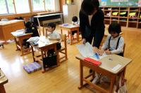 授業の様子 1つ1つの課題に一生懸命取り組んでいます。先日植えた花もスクスク育っています。