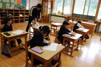 全校で合唱練習をしています。白山市の音楽会に向けて歌声を磨いています。