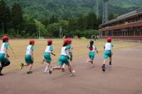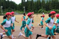 「マラソン週間」 来週予定のマラソン記録会に向けて、長休みの時間は全校ランニングをしています。