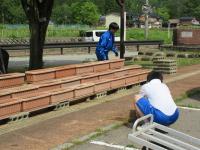 技術科 中学2年生が協力して、苗植えのためのプランター作りに汗を流しました。
